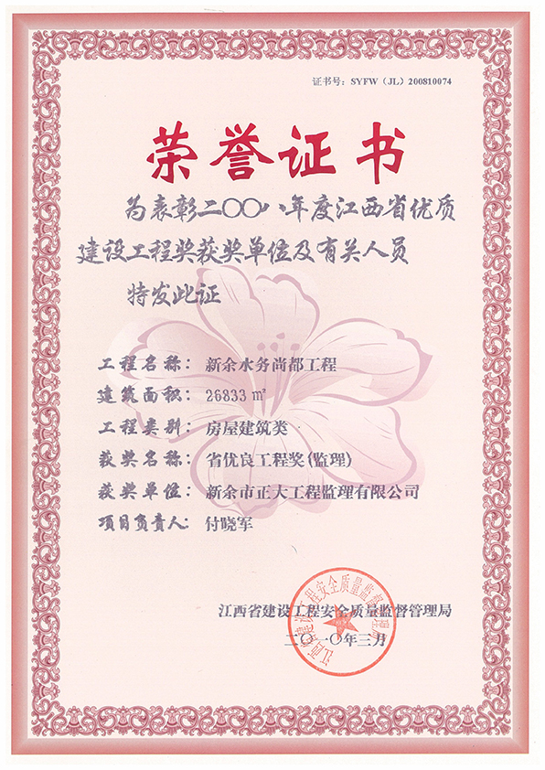 新余市正大工程監(jiān)理有限公司依托新余市建筑設(shè)計(jì)院,于1995年11月成立,是新余市開(kāi)展監(jiān)理工作最早的監(jiān)理單位,本公司具有建設(shè)部核發(fā)的房屋建筑工程甲級(jí)監(jiān)理資質(zhì)、市政公用工程乙級(jí)監(jiān)理資質(zhì)、國(guó)家人防辦核發(fā)的人防工程監(jiān)理乙級(jí)資質(zhì)。我公司始終堅(jiān)持“客戶至上、質(zhì)量第一、信守合同”的經(jīng)營(yíng)理念;追求“為社會(huì)創(chuàng)造價(jià)值、為業(yè)主創(chuàng)造效益、為自身謀求發(fā)展”的經(jīng)營(yíng)宗旨;遵循“守法、誠(chéng)信、公正、科學(xué)、優(yōu)質(zhì)、高效”的工作原則,以雄厚的技術(shù)力量、完善的管理制度、豐富的監(jiān)理經(jīng)驗(yàn)、良好的企業(yè)信譽(yù)迅速成為我市監(jiān)理行業(yè)的一支新銳力量!